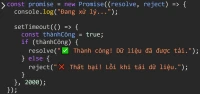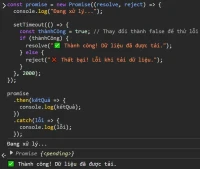 Nếu Promise được giải quyết thành công (fulfilled), hàm xử lý trong then() sẽ được gọi và nhận được kết quả của Promise. Nếu Promise bị từ chối (rejected), hàm xử lý trong catch() sẽ được gọi và nhận được lỗi. - Dùng Async/Await