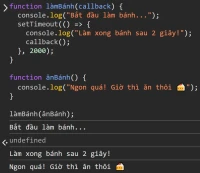 Để xử lý bất đồng bộ thì mọi người thường biết tới các tên gọi sau đây: Callback, Promise, Async/Await, đúng vậy đó là những cách phổ biến nhất để xử lý bất đồng bộ tùy thuộc vào những trường hợp mà áp dụng.- Dùng hàm Callback