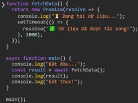 Ở ví dụ trên, dù fetchData() trả về một Promise, ta không cần gọi .then() và .catch() để xử lý kết quả hoặc lỗi. Thay vào đó, ta sử dụng await để đợi cho Promise hoàn thành và lấy kết quả trả về. Việc này giúp làm cho code trông dễ đọc và giảm đi sự lồng nhau của các callback hay Promise.